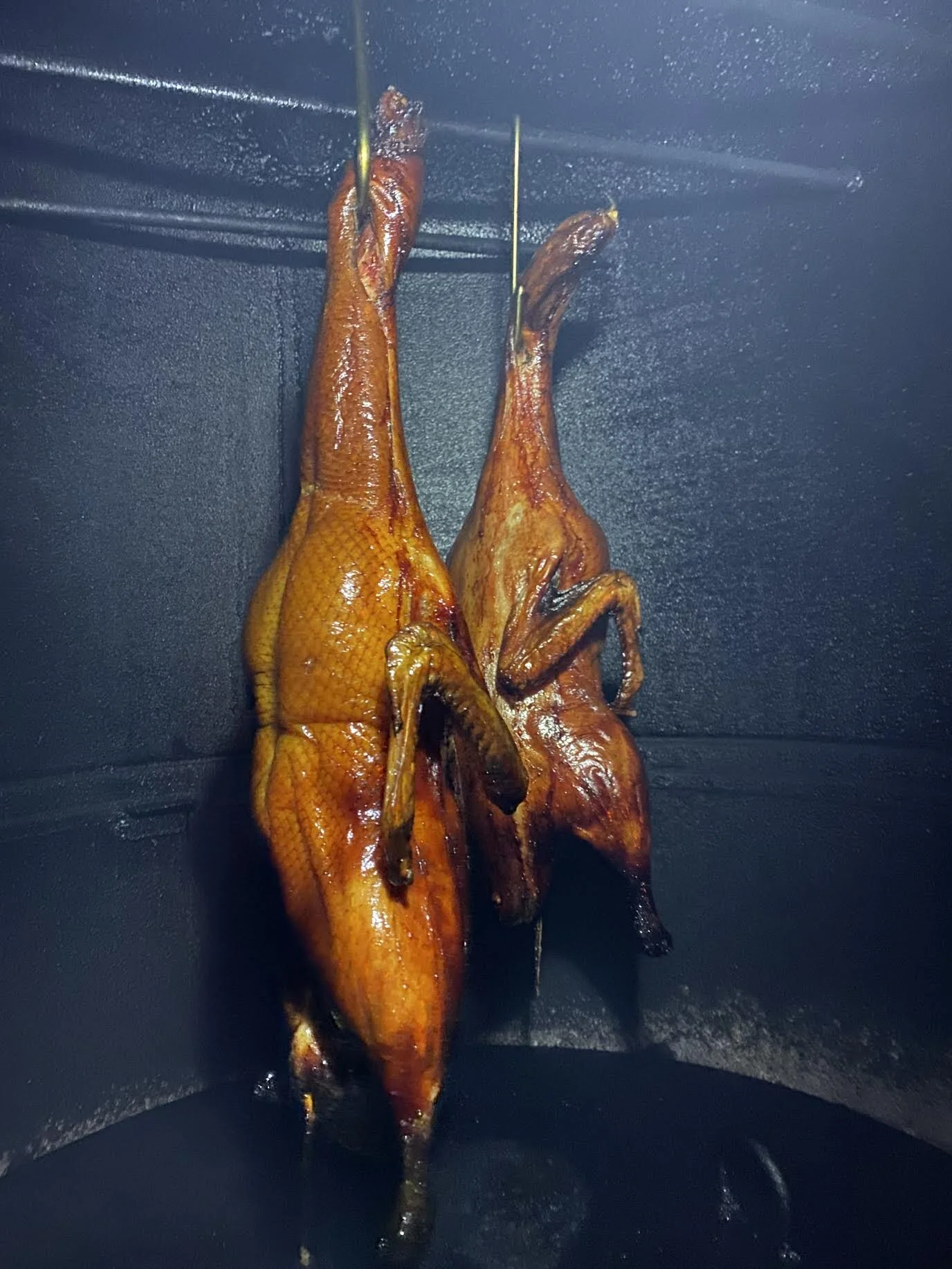 I’m no duck expert, but having been raised on a LOT of Chinese roast meats through the years, I knew at least the basics of what I needed to achieve: crispy, crispy skin (this is a must), and juicy, tender meat that doesn’t dry out. I also didn’t want to roast it in an oven, and The Roommate was adamant about sticking as close to traditional methods as possible. So, we decided to try roasting the ducks in our outdoor smoker, using hot coals instead of wood to avoid the smoky flavour. Simple, right?